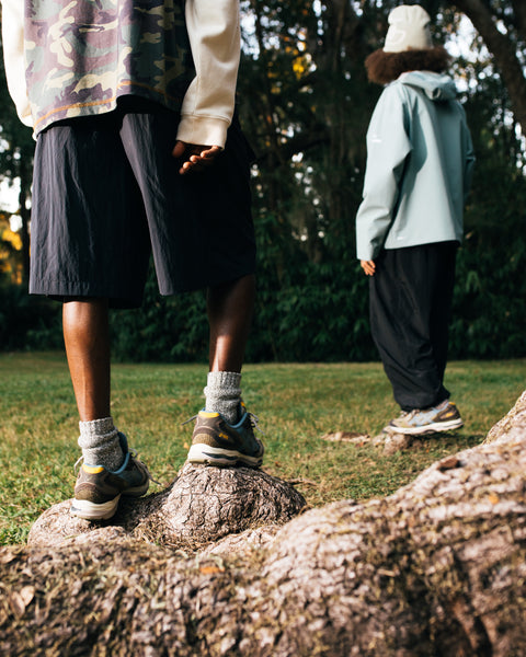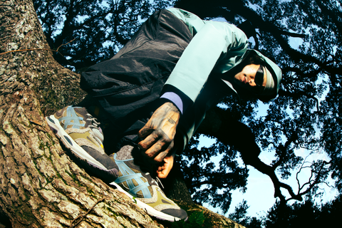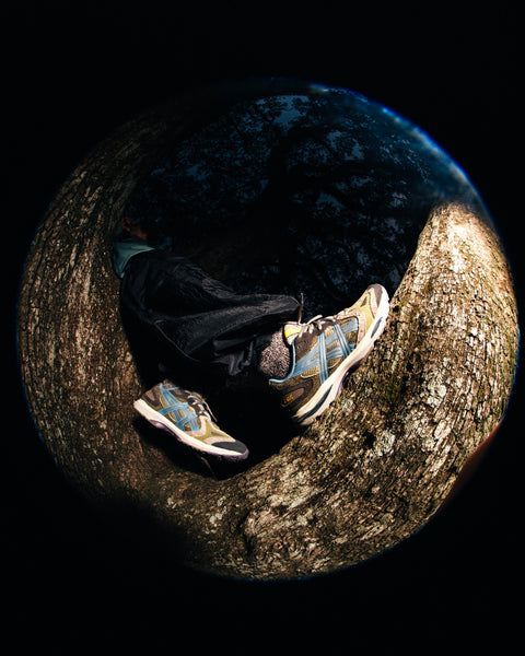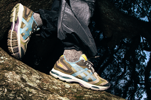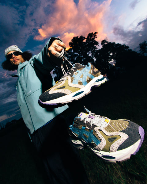 The ASICS GEL-K1011 'Live Oak' leans into nature lore, inspired by Louisiana’s long-standing live oaks. It wears a durable combination of materials in muted earth tones, accented with flashes of stormy blue and gold. The mixing of rugged suede and open-weave mesh fuses a grounded toughness with breathable performance, rooting an organic feel into the overall design.