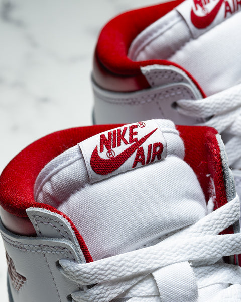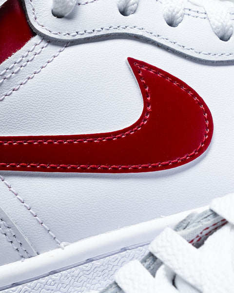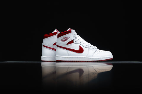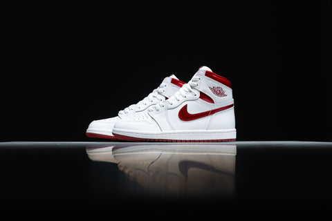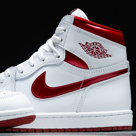 JORDAN BRAND RESURRECTS A CHERISHED CLASSIC FROM THE VAULT, ITS FIRST RETRO RELEASE SINCE 1985: THE AIR JORDAN 1 “METALLIC BURGUNDY.” FEATURING A PRISTINE WHITE AND TEAM RED COLOR SCHEME ON AN ALL-LEATHER CONSTRUCTION, ACCENTED WITH METALLIC TEAM RED HIGHLIGHTS, THE SHOE SHOWCASES BURGUNDY "NIKE AIR" BRANDING ON THE TONGUES, RESTING ATOP A WHITE MIDSOLE AND BURGUNDY RUBBER OUTSOLE.