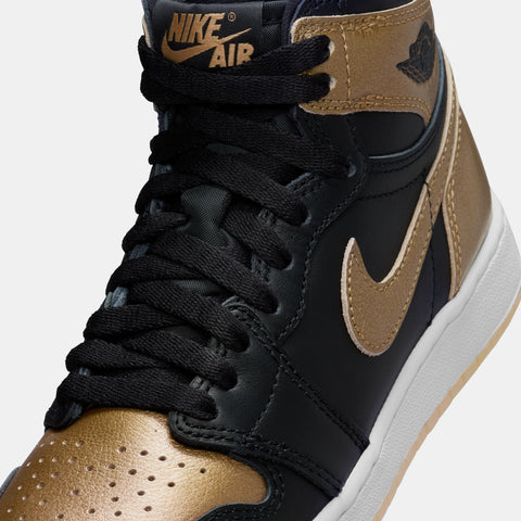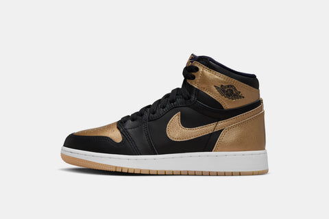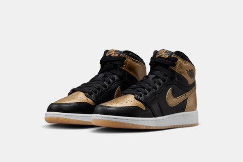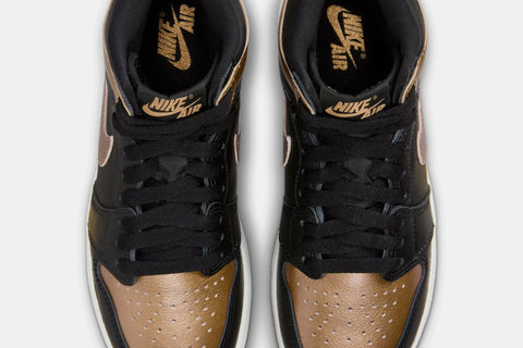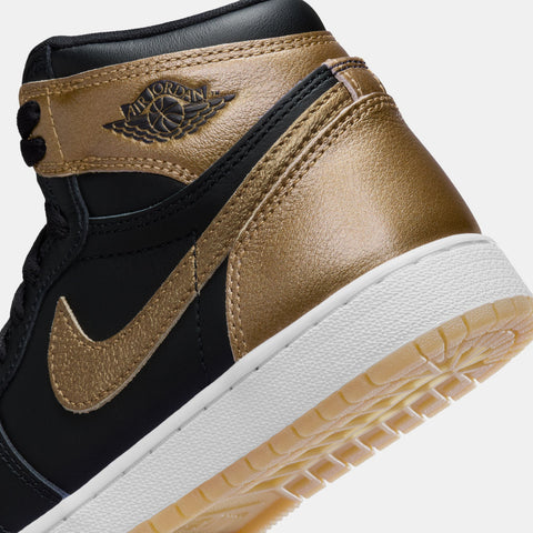 JORDAN BRAND INTRODUCES A ‘METALLIC GOLD’ VERSION TO ADD TO THE AIR JORDAN 1 LEGACY. THIS ITERATION SHOWCASES A BLACK LEATHER UPPER WITH GOLDEN HIGHLIGHTS, A NIKE AIR TAG ON THE TONGUE, AND A WHITE MIDSOLE PAIRED WITH A GUM RUBBER OUTSOLE FOR GRIP AND SUPPORT.