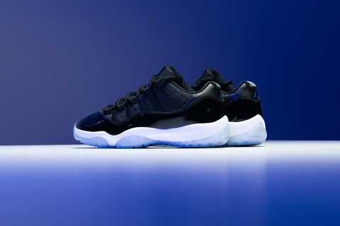BEING ONE OF THE MOST ICONIC PAIRS TO GRACE THE BIG SCREEN, THE AIR JORDAN 11 ‘SPACE JAM’ MAKES ITS DEBUT IN THE LOW-TOP VERSION! THIS LEGENDARY SNEAKER ARRIVES IN A COLORWAY OF BLACK, VARSITY ROYAL, AND WHITE. STAYING TRUE TO THE OG DESIGN, THIS PAIR FEATURES PATENT LEATHER, MESH ON THE UPPER, A WHITE MIDSOLE, AND AN ICY BLUE TRANSLUCENT OUTSOLE WITH VARSITY ROYAL ACCENTS.