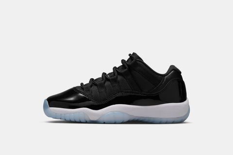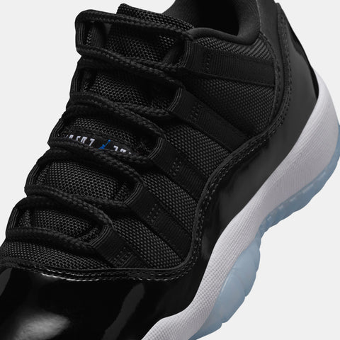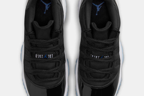 BEING ONE OF THE MOST ICONIC PAIRS TO GRACE THE BIG SCREEN, THE AIR JORDAN 11 ‘SPACE JAM’ MAKES ITS DEBUT IN THE LOW-TOP VERSION! THIS LEGENDARY SNEAKER ARRIVES IN A COLORWAY OF BLACK, VARSITY ROYAL, AND WHITE. STAYING TRUE TO THE OG DESIGN, THIS PAIR FEATURES PATENT LEATHER, MESH ON THE UPPER, A WHITE MIDSOLE, AND AN ICY BLUE TRANSLUCENT OUTSOLE WITH VARSITY ROYAL ACCENTS.
