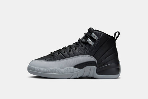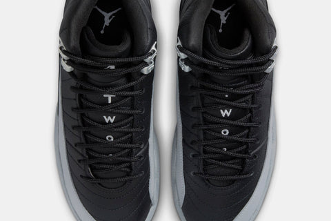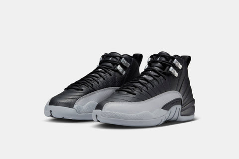 KNOWN FOR ITS SCULPTURAL AND FUTURISTIC SILHOUETTE, THE NEW AIR JORDAN 12 SHOWCASES ICONIC TWO-TONE COLOR-BLOCKING IN THE "WOLF GREY" COLORWAY. IT FEATURES BLACK TUMBLED LEATHER ON THE UPPER, INTERIOR, AND TONGUE, WITH WOLF GREY OVERLAYS AND WHITE BRANDING.