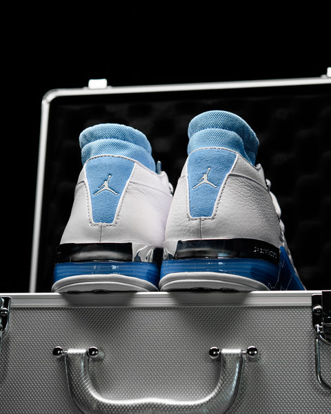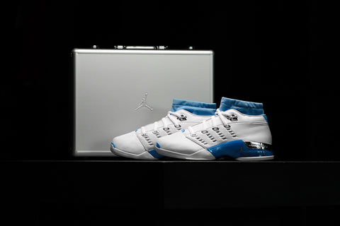 JORDAN BRAND REVIVES A CLASSIC FROM 2002 WITH THE AIR JORDAN 17 LOW 'UNC,' CELEBRATING MICHAEL JORDAN’S COLLEGE DAYS AT THE UNIVERSITY OF NORTH CAROLINA. THIS EDITION HAS A CRISP WHITE LEATHER UPPER, CHROME EYELETS, A CAROLINA BLUE DYNAMIC FIT INTERIOR SLEEVE, AND A ZOOM AIR UNIT FOR ADDED CUSHIONING.