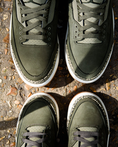 The Air Jordan 3 Retro 'Family Affair' channels earthly texture with coveted olive tones over smooth leather, offset by the Seqouia accents. The legendary elephant print panels ground the look in timeless AJ3 heritage. Together, they deliver a rugged-meets-refined design that wears just as hard in the streets as it will in your daily life.