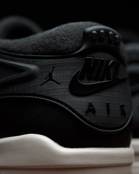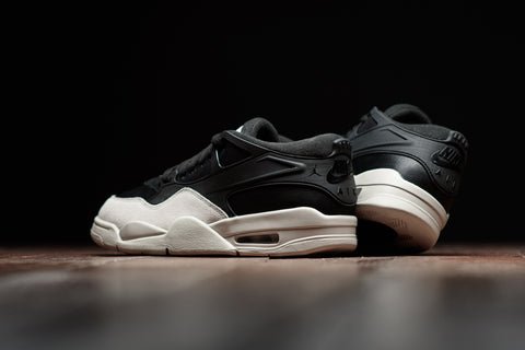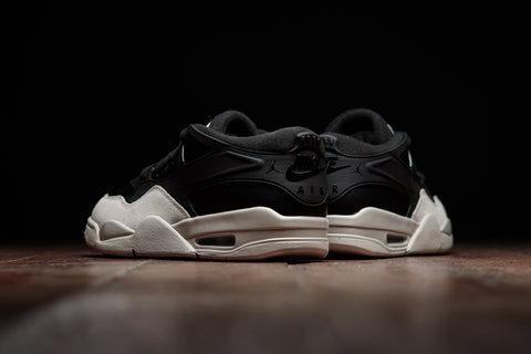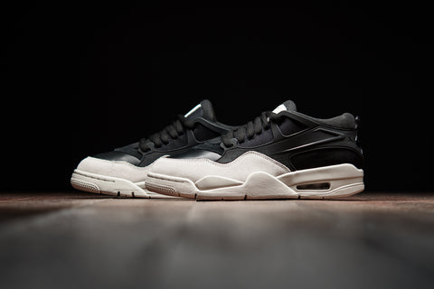 THE AIR JORDAN 4 RM 'BLACK LIGHT BONE' REIMAGINES THE AJ4 WITH A LOW-TOP DESIGN IN BLACK AND OFF-WHITE  COLORWAY. TEXTILE MESH, LEATHER AND SUEDE ARE USED TO CONSTRUCT THIS SILHOUETTE, WHICH ALSO BOASTS NEW TPU OVERLAYS EXTENDING TO THE HEEL. LASTLY, JUMPMAN LOGOS ARE EMBLAZONED ON THE HEELS WITH VISIBLE AIR UNITS SPOTLIGHTED IN THE REWORKED SOLE.