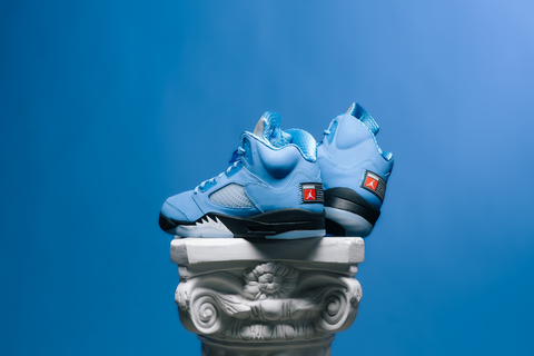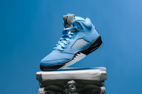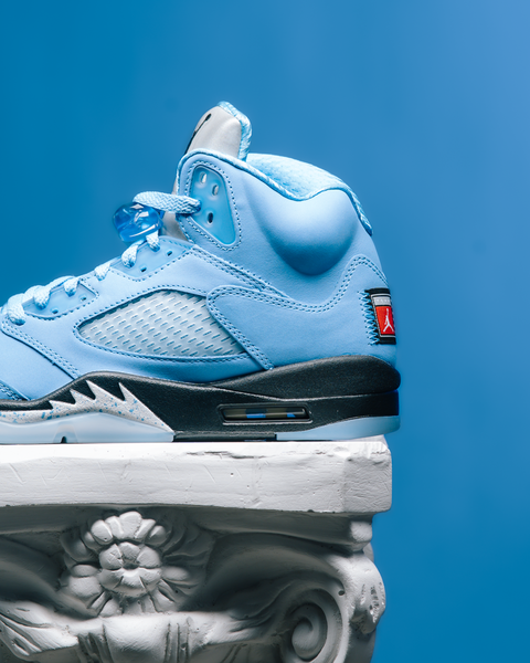 THE LATEST COLOR SCHEME TO ADORN THE TINKER HATFIELD CLASSIC AJ5 PAYS HOMAGE TO A TRUE COLLEGE BASKETBALL BLUE-BLOOD AND MICHAEL JORDAN'S ALMA MATER, THE UNIVERSITY OF NORTH CAROLINA. A UNIVERSITY BLUE HUE COVERS THE ENTIRETY OF THE SILHOUETTE'S UPPER WHILE ITS METALLIC SILVER TONGUE AND BLACK MIDSOLE SERVE AS ACCENTS AND ROUND OUT THE DESIGN.
