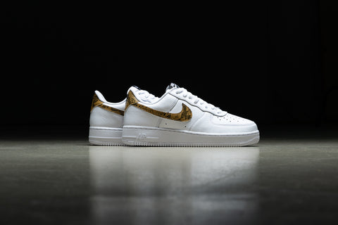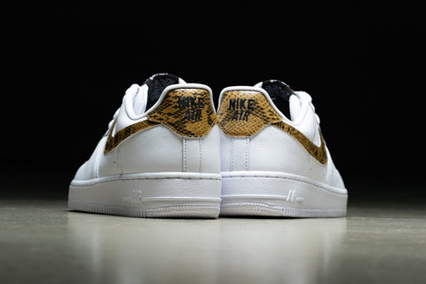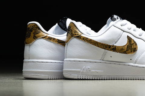 NIKE IS RE-RELEASING THE AIR FORCE 1 'IVORY SNAKE,' ORIGINALLY DEBUTED EXCLUSIVELY IN ASIA IN 1996. THIS PREMIUM VERSION FEATURES A CLEAN WHITE LEATHER UPPER WITH BROWN SNAKESKIN DETAILS ON THE SWOOSH AND HEEL TAB, COMPLEMENTED BY RETRO "NIKE AIR" BRANDING ON THE HEEL TABS AND A BLACK-AND-WHITE TONGUE TAG, STAYING TRUE TO ITS SIMPLISTIC DESIGN FROM THE MID-'90S.
