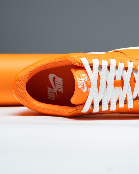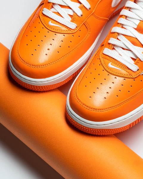 NIKE'S AIR FORCE 1 'COLOR OF THE MONTH' SERIES, A PART OF THE SILHOUETTE'S 40TH ANNIVERSARY CELEBRATION, WAS A BIG SUCCESS AND IT APPEARS THE SWOOSH IS CONTINUING THE TREND IN 2023. THE PILLARS OF THE COTM SERIES ARE HIGH-QUALITY MATERIALS AND EYE-CATCHING HUES, AND THIS MONTH'S 'SAFETY ORANGE' EDITION IS DEFINITELY ROCKING BOTH. REMINISCENT OF A DELICIOUS ORANGE CREAMSICLE, THIS AF1 COMES DRESSED IN BUTTERY, BI-CHROMATIC SCHEME ON THE SILHOUETTE'S ORIGINAL 1982 TOOLING THAT FEATURES A BRIGHT ORANGE UPPER COMPOSED OF PREMIUM LEATHER THAT'S OFFSET BY AN ICY WHITE MIDSOLE AND JEWEL SWOOSH. COMPLETING THE DESIGN ARE THE BOLD 'NIKE AIR TEXT ON THE HEELS AND TONGUES AND A TOOTHBRUSH CHARM THAT COMES WITH THE SHOES AS A FUN BONUS.