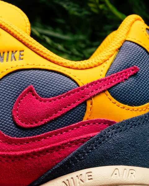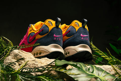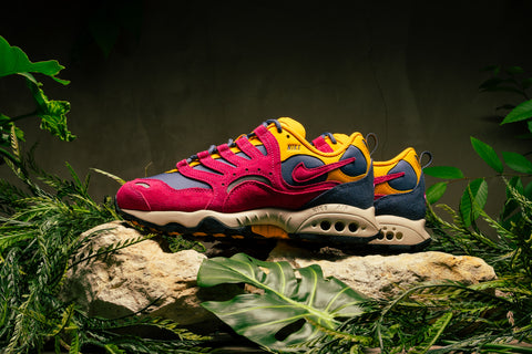 NIKE REVISITS ANOTHER RUGGED CLASSIC FROM THE '90S WITH THE REINTRODUCTION OF THE 'AIR TERRA HUMARA' AS OUTDOOR STYLES CONTINUE TO GAIN POPULARITY. THIS UPDATED VERSION FEATURES A BRIGHT 'ALCHEMY PINK' COLORWAY ACCENTED WITH 'DIFFUSED BLUE' AND 'UNIVERSITY GOLD' FOR A BOLD LOOK. CONSTRUCTED WITH SUEDE AND WOVEN TEXTILE, THE SHOE SHOWCASES THE PINK HUE ON THE MIDFOOT AND MUDGUARD, WITH BLUE ON THE HEEL AND GOLD ON THE COLLAR. A VISIBLE MAX AIR UNIT IN THE HEEL AND AN OFF-WHITE MIDSOLE COMPLETE THE DESIGN.