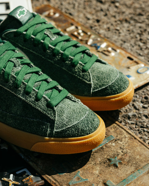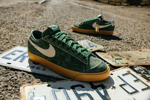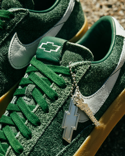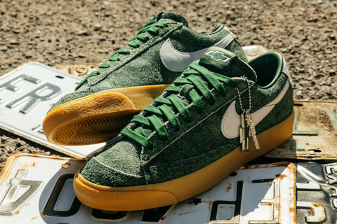 The Nike Blazer Low x Chevrolet “Team Dark Green” is part of Devin Booker’s latest collaboration with Nike and Chevrolet, inspired by his three beloved 1972 Chevrolet Blazers. This special-edition sneaker reflects Devin’s passion for vintage cars and personal style, featuring a green hairy suede upper with a contrasting white Swoosh atop a classic gum sole. Additional details include Chevy logo hits on the tongue tag and insole, plus a keychain-inspired hangtag to complete the look.