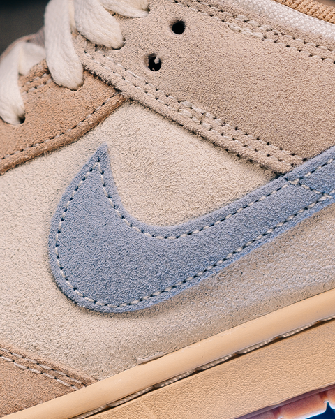 MAKING ITS WAY INTO THE DUNK ROSTER FOR 2024, THIS “SANDDRIFT/ARMORY BLUE” ITERATION OF THE NIKE DUNK LOW FEATURES A HARMONIOUS BLEND OF COCONUT MILK, LIGHT ARMORY BLUE, AND SANDDRIFT HUES. CONTRASTING SWOOSHES, HEEL TABS, LACES, AND TONGUE BRANDING IN LIGHT ARMORY BLUE ADD A POP OF COLOR. COMPLETE WITH CANVAS DETAILING, AGED RUBBER MIDSOLE, AND VINTAGE GUM RUBBER OUTSOLE.