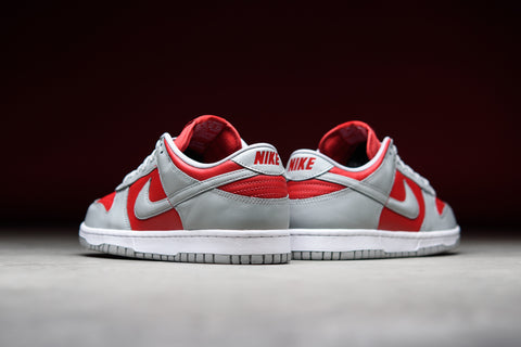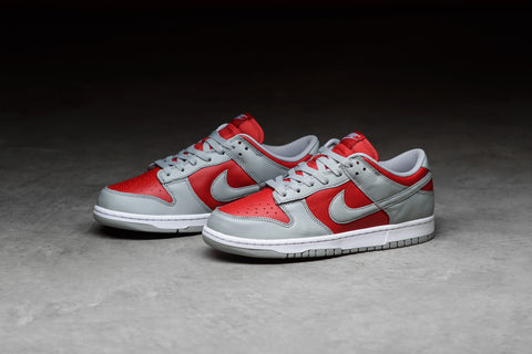 CONTINUING THE RELEASE AND REINTRODUCTION OF THE JAPAN-EXCLUSIVE CO.JP SERIES, THE NIKE DUNK LOW "ULTRAMAN" RETURNS, DRAWING INSPIRATION FROM THE COLOR SCHEME OF THE JAPANESE SUPERHERO FROM THE 1960S. THE SHOE FEATURES A RED BASE COMPLEMENTED BY SILVER ACCENTS ON THE OVERLAYS, EYESTAYS, HEEL TABS, LINING, AND OUTSOLE. THE UPPER IS CONSTRUCTED WITH LEATHER, WHILE MESH IS USED ON THE TONGUES AND LINING FOR BREATHABILITY. THE SNEAKER SITS ATOP A WHITE MIDSOLE WITH ADDITIONAL RED ACCENTS ON THE TONGUE TAG AND HEEL, COMPLETING THE HOMAGE TO ULTRAMAN.