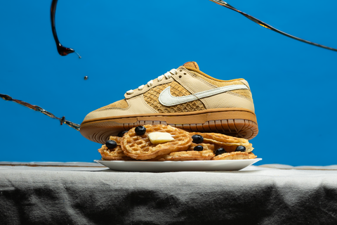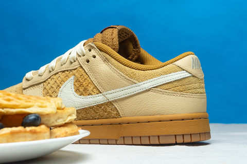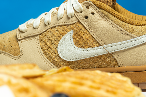 DRAWING INSPIRATION FROM THE BELOVED NIKE SB DUNK HIGH WAFFLE OF 2016, THE SIGNATURE DUNK LOW SILHOUETTE EMBRACES A WAFFLE-THEMED DESIGN. WHEAT, COCONUT MILK, SESAME, BLACK, AND TOTAL ORANGE HUES COMBINE IN A TASTEFUL BLEND OF FUZZY SUEDE AND SMOOTH LEATHER OVERLAYS. TUMBLED LEATHER ACCENTS ON THE SWOOSH AND HEEL BRANDING INTRODUCE AN ELEGANT TOUCH, WHILE VIBRANT ORANGE DETAILS EXTEND THE BREAKFAST THEME TO THE TONGUE AND INSOLE LABELS. THE DESIGN IS COMPLETED WITH A TWO-TONE GUM RUBBER SOLE, DELIVERING A TASTEFULLY STYLISH FINISH TO THIS FLAVORFUL RENDITION.