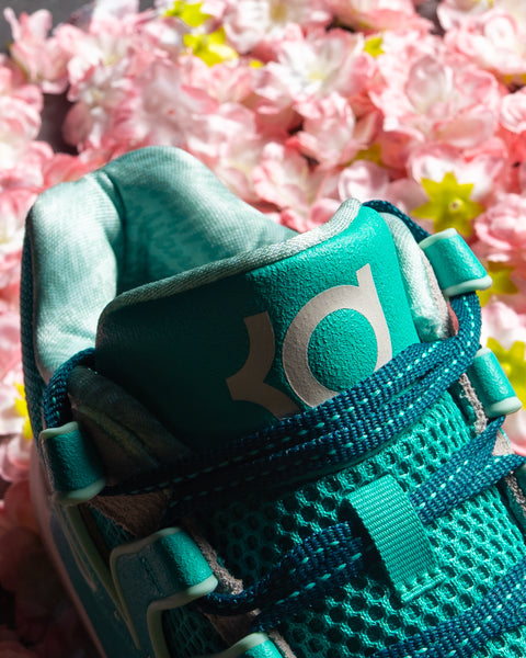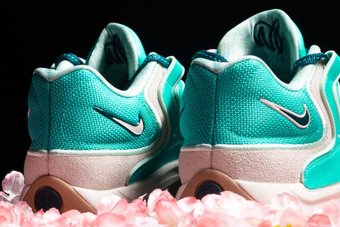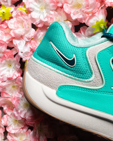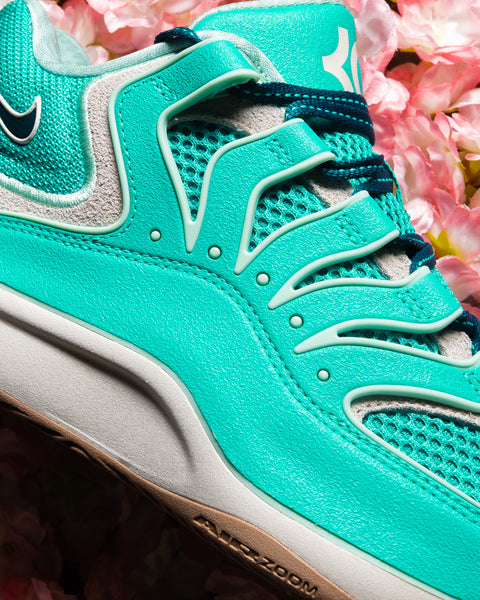 The Nike KD 18 'Wanda' pays tribute to the woman behind the legend. An elegant blend of turquoise and khaki tones fashioned in honor of KD’s mother, Wanda Pratt. Underneath, full-court specs like a forefoot Air Zoom unit, Cushion foam, and a supportive mid-foot cage deliver the same performance intensity that propels KD’s game.