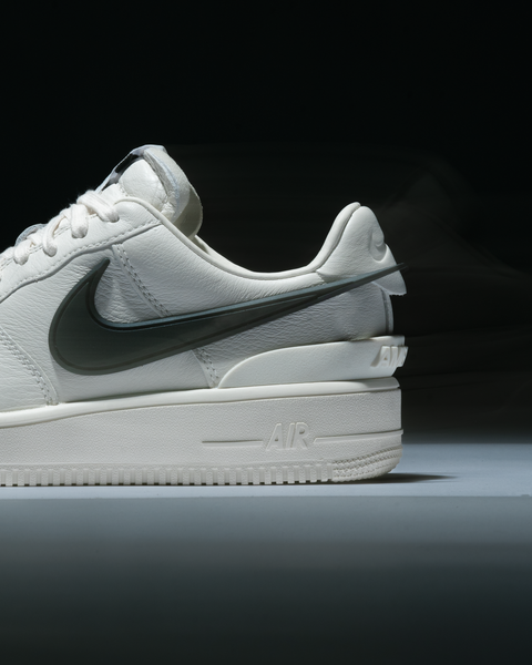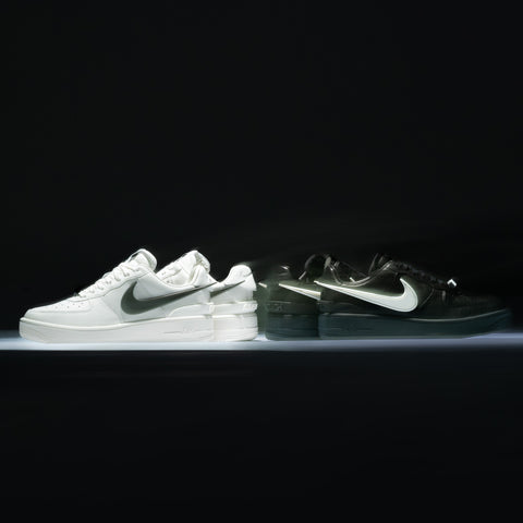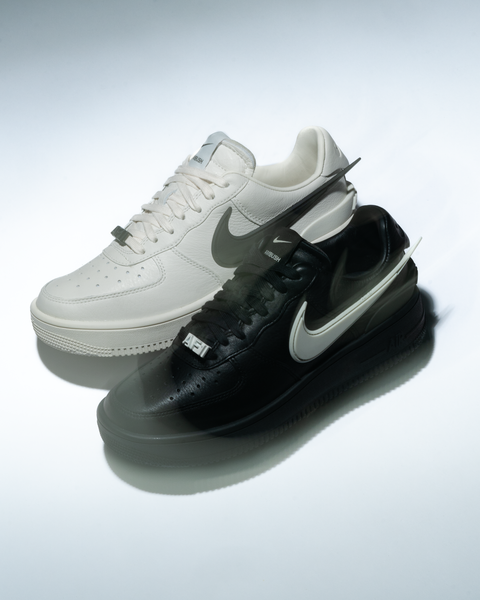 THE SECOND DELIVERY OF NIKE'S AF1 COLLABORATION WITH JAPANESE LABEL AMBUSH HAS ARRIVED IN MORE NEUTRAL COLOR SCHEMES THAT FEATURE EITHER A BLACK SWOOSH ON AN ALL-WHITE SILHOUETTE OR A WHITE SWOOSH ON AN ALL-BLACK SILHOUETTE. DRAWING INSPIRATION FROM TRUCKS, CARS, AND MOTORCYCLES, THE EXTENDED MODIFIED SWOOSH IS MADE TO REPRESENT A MUFFLER AND SITS ATOP AN UPPER CONSTRUCTED FROM PREMIUM LEATHER.