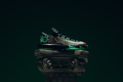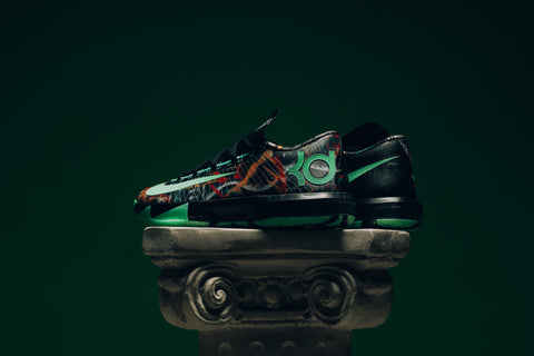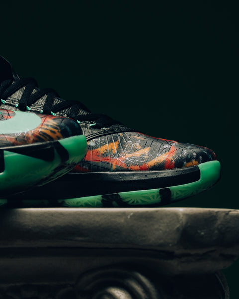 The Nike Zoom KD 6 'All-Star' brings back the energy of New Orleans in 2014, tapping into the NOLA Gumbo League theme that defined one of Durant’s most electric seasons. The upper is layered with intricate, almost mural-like graphics that feel alive, framed by bright accents that cut through the chaos with purpose. Flywire cables lock the foot in place, while a visible Air unit delivers the responsive snap that made the KD 6 a favorite the first time around. It’s a reminder of when OKC felt unstoppable and Durant’s game was must-watch every night.