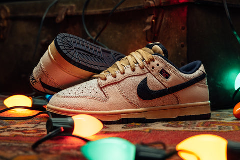 The Stranger Things x Nike Dunk Low blends ’80s hoops flavor with a narrative edge, bringing cracked leather textures and mirrored branding into a world where everyday life brushes with the supernatural. The aged midsole adds a lived-in feel, like something pulled from a dusty Hawkins gym locker. It’s a wearable link between nostalgia and mystery, making it a compelling pickup for fans of story-driven design.
