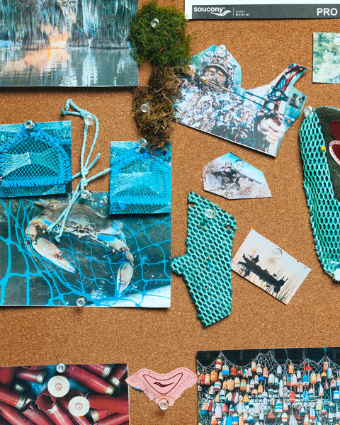 The details on the shoe tell their own story. The mesh panels draw from the fishing and crabbing nets that have been used along the coast for generations. Hairy suede panels nod to Spanish moss draped from cypress and oak trees, soft in movement but tough enough to handle the heat, humidity, and time that define the South. Subtle pink hits on the tongue and heel come from the roseate spoonbill, a striking bird native to the region whose color comes straight from the seafood-rich wetlands it calls home.