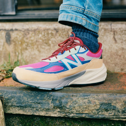 Drawing from lush landscapes and childhood memories of Action Bronson in Flushing, Queens, the BAKLAVA x New Balance 990v6 “AINOZAMA” blends deep jungle tones with nostalgic roots. Bronson’s signature BAKLAVA branding rides atop a suede and mesh upper in hi-pink, royal blue, and neutral hues, grounded by a FuelCell midsole and earthy outsole. A tribute to everywhere you’ve been—and everywhere you’re headed.