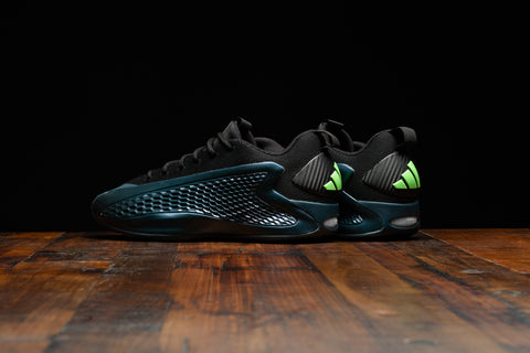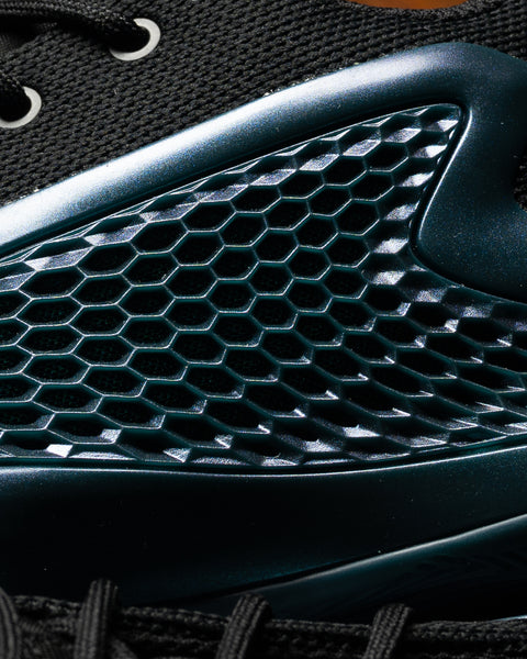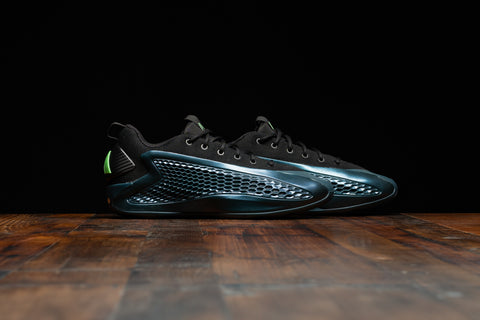 ELEVATING ANTHONY EDWARDS' DEBUT SIGNATURE SHOE, THE AE 1 LOW 'ARCTIC NIGHT' MARRIES A DARK, BREATHABLE MESH UPPER WITH EXPANSIVE TPU WINGS FEATURING A UNIQUE HONEYCOMB TEXTURE AND IRIDESCENT SHEEN. CLEAN GREEN DETAILS PUNCTUATE THE HEEL AND TONGUE, WHILE A LIGHTSTRIKE MIDSOLE WITH LIGHT BOOST DELIVERS EFFORTLESS COMFORT.