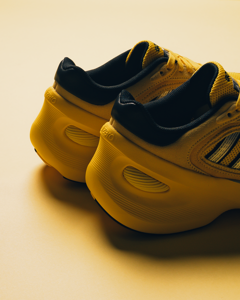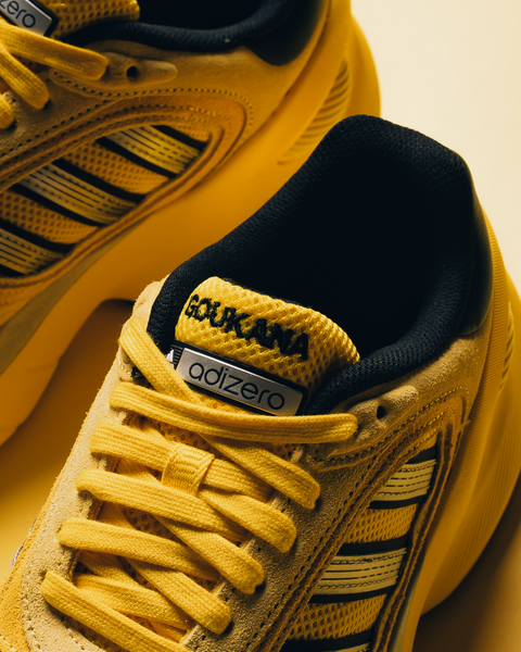 The Adidas Adizero Goukana redefines proportions through layered textures and exaggerated contours. Lightweight mesh ensures breathability, while suede overlays and reflective details add depth. A responsive midsole, cushioned heel, and integrated stability element deliver performance and all-day comfort.