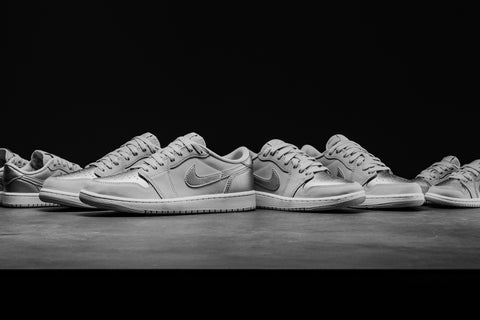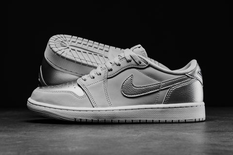 SIMILAR TO THE DUNK LOW, THE AIR JORDAN 1 LOW PROVES TO BE A VERSATILE CANVAS FOR VARIOUS COLOR AND MATERIAL COMBINATIONS. THE 'METALLIC SILVER' FEATURES A PALETTE OF NEUTRAL GREY, METALLIC SILVER, AND WHITE, CRAFTED FROM A BLEND OF SUEDE AND LEATHER FOR A PREMIUM TOUCH. METALLIC SILVER ACCENTS ON THE TOE BOX, SWOOSH, AND HEEL OVERLAYS ADD TO THE SHOE'S AESTHETIC, WHILE THE CLASSIC WINGS BRANDING ON THE HEEL PAYS HOMAGE TO 2001 ORIGINAL RELEASE. COMPLETING THE DESIGN IS A WHITE MIDSOLE AND NEUTRAL GREY RUBBER OUTSOLE.