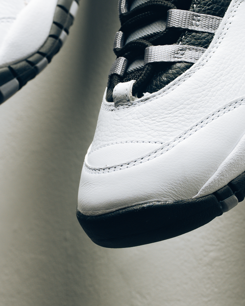 The Air Jordan 10 Retro 'Steel' revives the OG with the original toe-cap overlay and the crisp white leather. A minimal display of grey laces with black accents keep the shoe an orderly with original accuracy. With MJ’s early accolades of 10-seasons-past stamped into the sole, underneath the the full-length Air cushioning, this heat is history you can wear–or not.