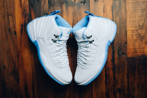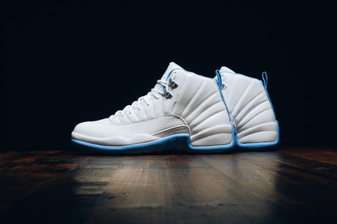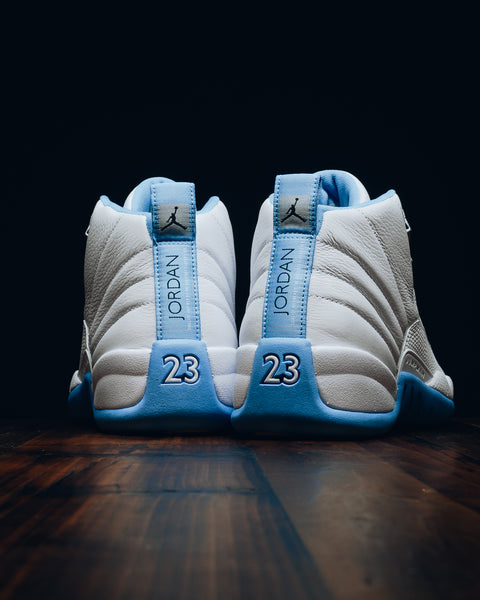 The Air Jordan 12 Retro ‘Melo’ returns in a clean white and university blue colorway, originally worn by Carmelo Anthony during his rookie season in Denver. Built with a full-grain leather upper, metallic silver eyelets, and signature stitched paneling, this classic silhouette pairs sharp contrast with heritage detail.