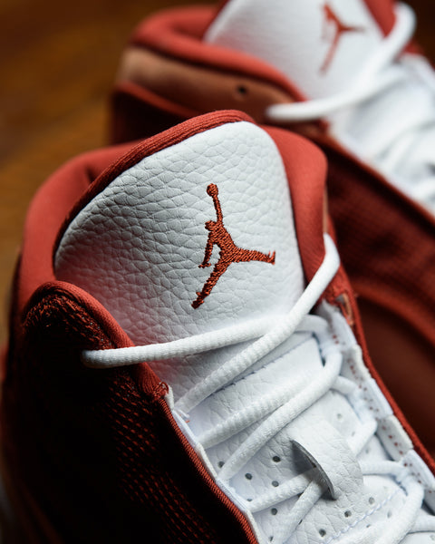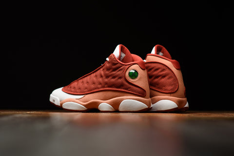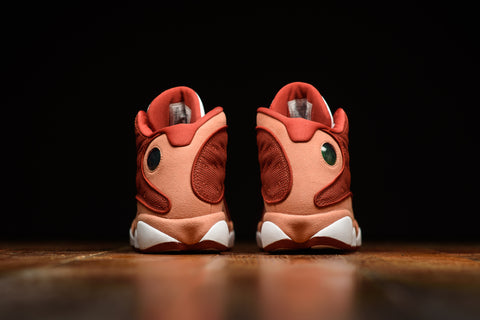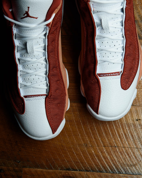 A FAN FAVORITE SINCE 1997, THE AIR JORDAN 13 DUNE RED IS A NICE ADDITION TO THE SUMMER 2024 JORDAN LINEUP. THIS NEW AIR JORDAN 13 FEATURES DUNE RED MESH PANELS WITH TERRA BLUSH SUEDE ON THE OVERLAYS, HEELS, AND MEDIAL SIDES. THE SNEAKER IS FINISHED WITH A WHITE LEATHER TONGUE, TOE BOX, AND MIDSOLE. THE SIGNATURE HOLOGRAM EMBLEM IS PLACED ON THE OUTER ANKLE, WHILE THE JUMPMAN LOGO APPEARS ON THE TONGUE.