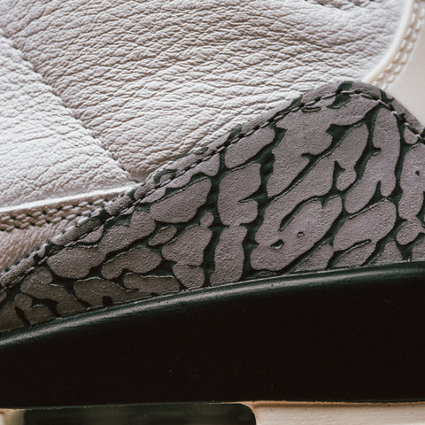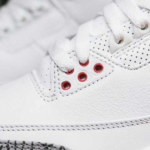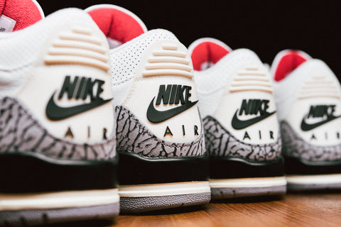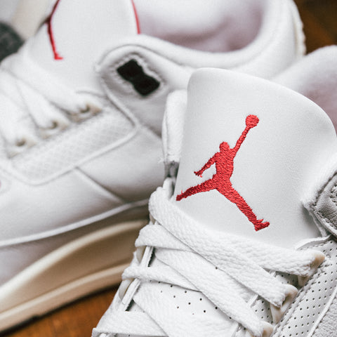 PART OF JORDAN'S 'REIMAGINED SERIES' AND CELEBRATING THE SILHOUETTE'S 35TH ANNIVERSARY, THE AJ3'S MOST FAMOUS COLORWAY IS RETURNING WITH A NEW TWIST. A VINTAGE AESTHETIC IS ADDED TO THE ICONIC SNEAKER WHERE THE OVERALL SHAPE IS MORE SIMILAR TO THE ORIGINAL THAN OTHER RETROS WHILE OTHER AREAS OF THE SHOE ARE INTENTIONALLY YELLOWED.