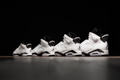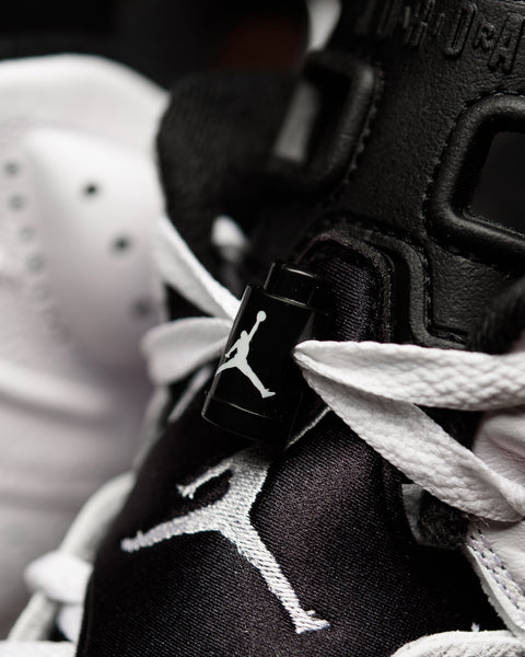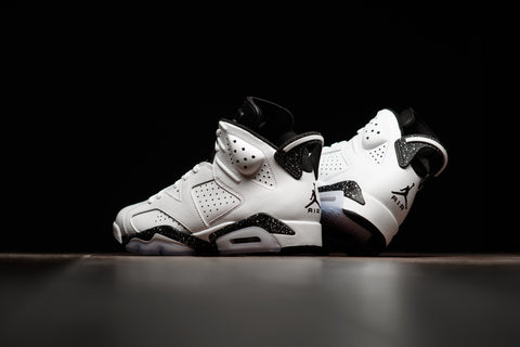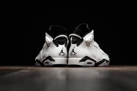 IN 1999, THE JORDAN BRAND INTRODUCED THE FAMOUS “OREO” THEME THROUGH THE AIR JORDAN 4, AND NOW, THE AIR JORDAN 6 RETRO 'REVERSE OREO' CONTINUES THIS ICONIC LEGACY. FEATURING A WHITE LEATHER UPPER WITH PERFORATIONS FOR BREATHABILITY, THIS SILHOUETTE IS ACCENTED WITH BLACK DETAILS SUCH AS A TWO-HOLE TONGUE AND SPECKLED HEEL TAB. JUMPMAN BRANDING ADORNS THE NEOPRENE LACE COVER AND BACK HEEL, WHILE A SPECKLED BLACK POLYURETHANE MIDSOLE WITH A VISIBLE AIR-SOLE UNIT COMPLETES THE DESIGN, SUPPORTED BY A TRANSLUCENT RUBBER OUTSOLE.