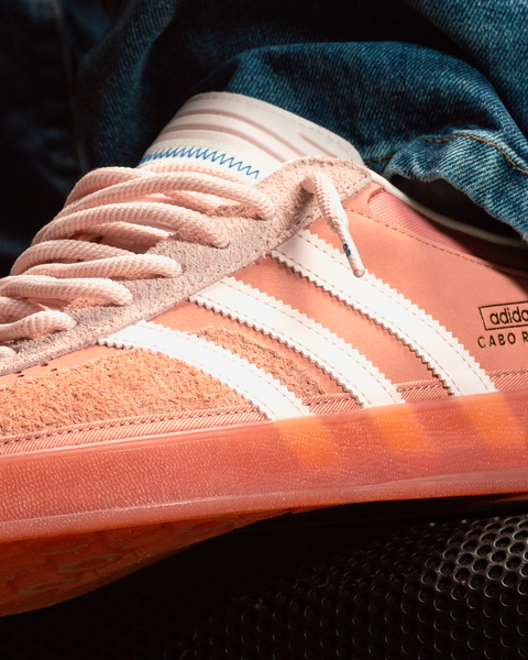 The Adidas Bad Bunny Gazelle “Cabo Rojo” flips the classic silhouette with suede and leather in warm Wonder Clay tones similar to the hues of Benito’s hometown. Translucent rubber outsoles and layered details give it that signature Bad Bunny remix. Equal parts retro and reimagined to be an undeniable take in Bad Bunny's style.