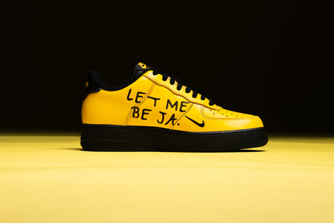 THE NIKE AIR FORCE 1 ‘07 X JA MORANT ‘LET ME BE JA’ BRINGS JA’S UNFILTERED EXPRESSION TO A COURT-BORN ICON. VIBRANT YELLOW LEATHER SETS THE FOUNDATION, CONTRASTED BY A BLACK OUTSOLE, MATCHING ACCENTS, AND A HIGH-GLOSS SWOOSH. HAND-STYLED LETTERING ALONG THE SIDEWALL ADDS A DIY EDGE, WHILE “12:AM” EMBROIDERY REMINDS YOU OF THE HOURS WHEN LEGENDS ARE MADE. GROUNDED IN CLASSIC AF1 COMFORT, THIS PAIR MAKES A STATEMENT THAT’S BOTH LOUD AND PERSONAL.